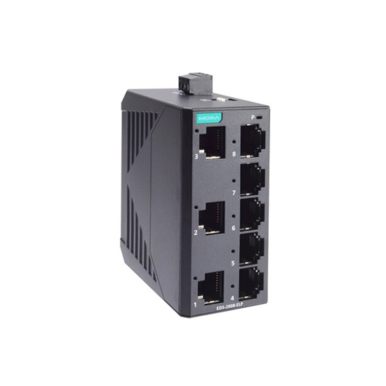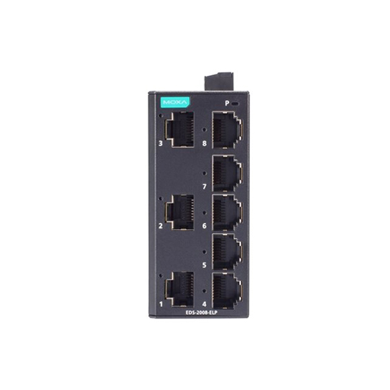 stability, even in harsh environments. Featuring 8 Ethernet ports, the Moxa EDS-2008-ELP unmanaged switch provides extensive connectivity for multiple devices, which