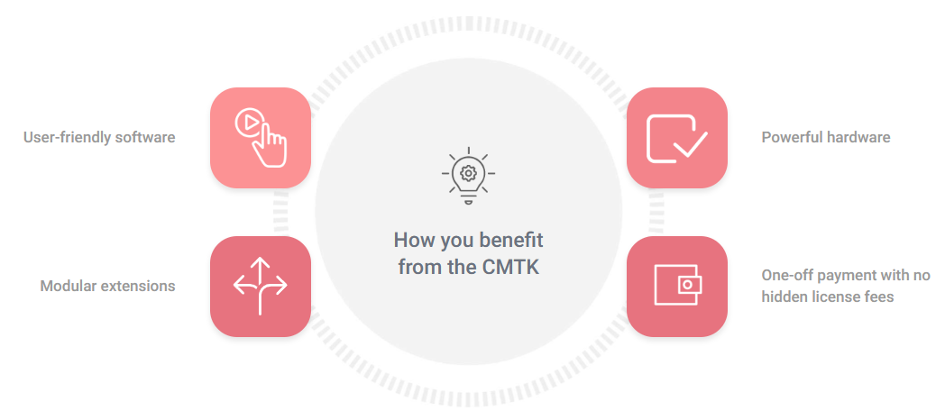 The CMTK is ready for immediate use without configuration. It can be optimally adapted to your needs with individual parameters, avoiding long downtimes.