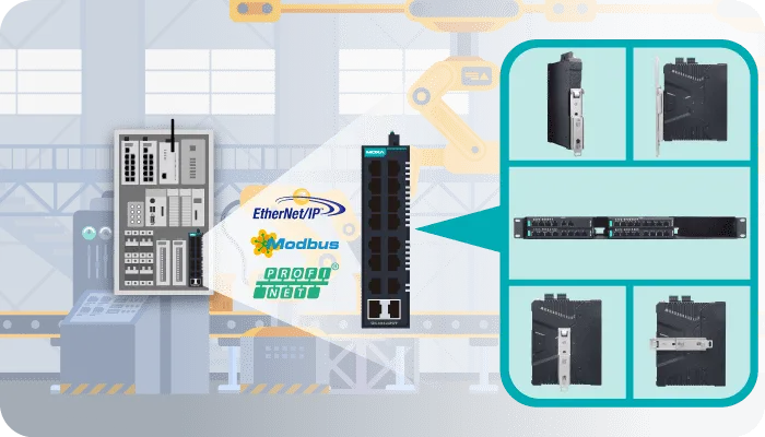 - Full support for EtherNet/IP, PROFINET, and Modbus TCP
