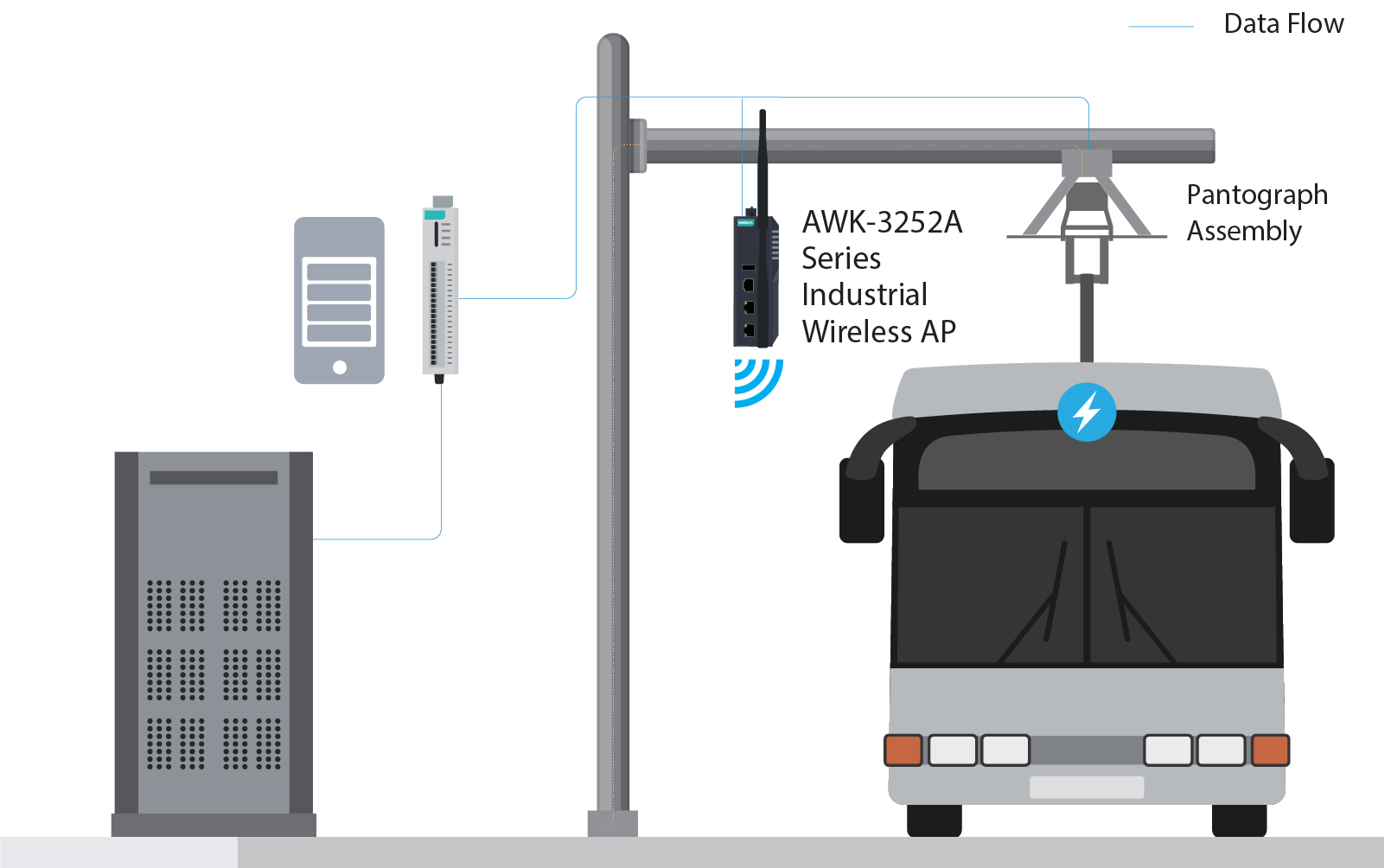Moxa's cutting-edge Wireless AP AWK-3252A Series, a pinnacle of robust industrial design, complies with the ISO 15118 standard. This standard ensures the secure identification and authentication of electric vehicles. In parallel, the Moxa ioLogik E1200 Series is the linchpin, streamlining data collection from end devices and propelling operational efficiency. Committed to collaboration, we actively engage with customers to help them adapt and innovate in this dynamic landscape. Experience the perfect blend of precision engineering and industry-leading standards, ushering in a new era for eBus charging—a future characterized by seamless, dependable, and efficient transportation solutions.