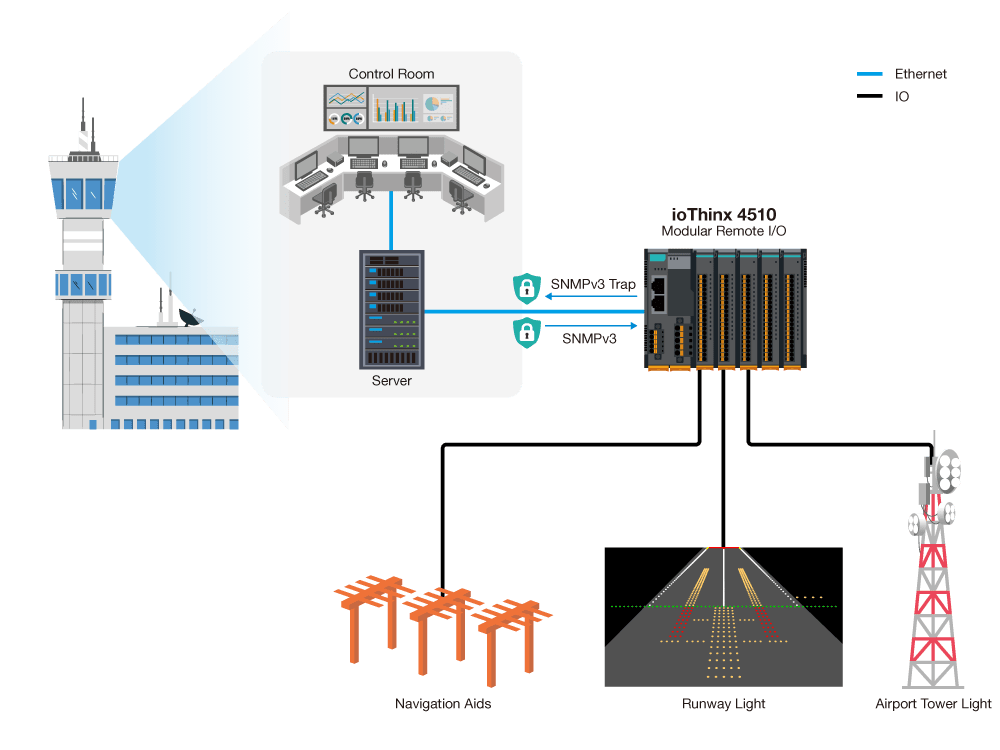 From bridges to airports, Moxa’s remote I/Os provide dependable control of outdoor systems such as lighting, roadside cabinets, and field devices—featuring a compact, rugged design engineered for harsh environments.